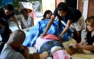 Momento em que paramédicos checavam o pulso da idosa, que estava fraco