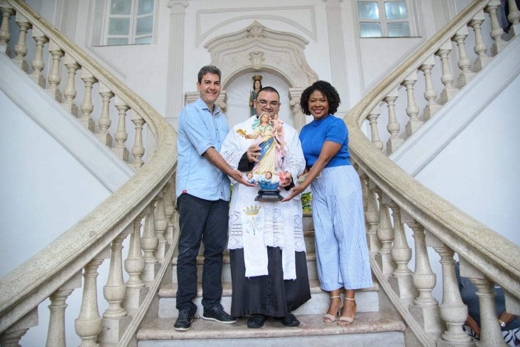 Sob a proteção do Clérigo da Catedral de Nossa Senhora da Vitória (Igreja da Sé), padre Roney Carvalho, a imagem foi conduzida à escadaria principal da sede da Prefeitura e, sem seguida, realizada uma celebração.