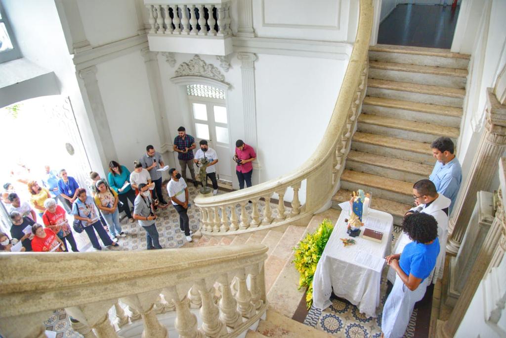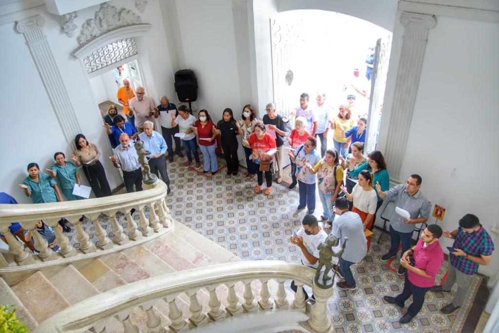 “Peço em nome de todos aqueles que servem, e que estão a serviço de nossa cidade, que Nossa Senhora da Vitória acolha nossa oração de consagração e leve até Jesus, para que ele continue abençoando cada um que trabalha servindo o outro, servindo nossa sociedade”, orou o clérigo mencionando o prefeito Eduardo Braide, a vice-prefeita Esmênia Miranda e todos os servidores presentes.