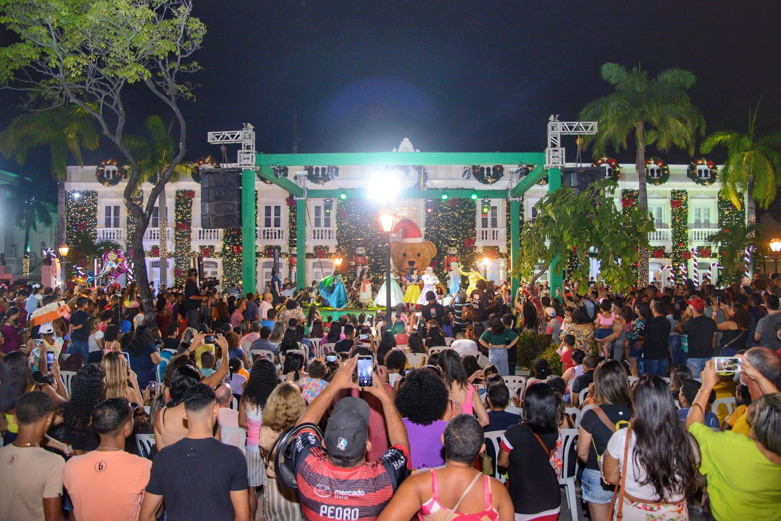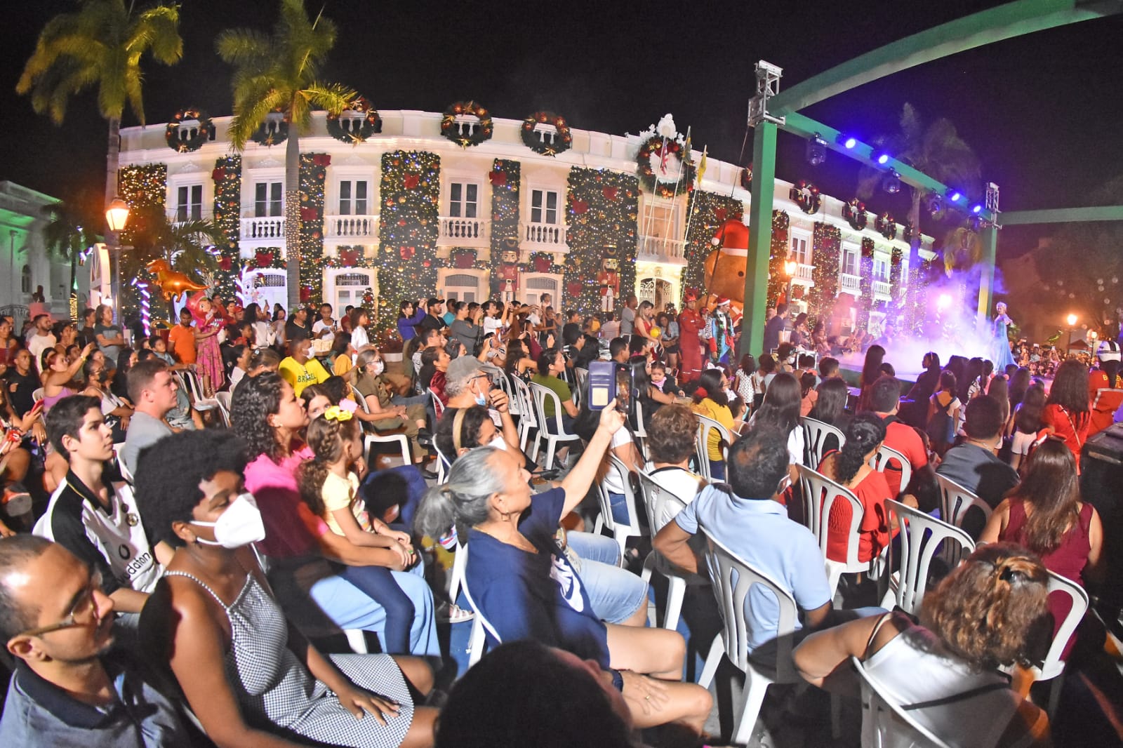 Com muita alegria e emoção, a Prefeitura de São Luís, por meio da Secretaria Municipal de Cultura (Secult), deu início na noite de sábado (3), à programação do Natal de São Luís – Viva essa Magia. Na ocasião, foi inaugurada a fachada do Palácio La Ravadière, sede da Prefeitura, que recebeu decoração inspirada no famoso Ballet “O Quebra Nozes”, seguida de grandes espetáculos natalinos.