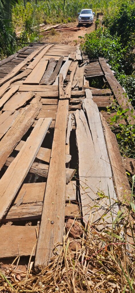 A ponte liga duas propriedades e fica localizada a aproximadamente 15 km da sede do município.