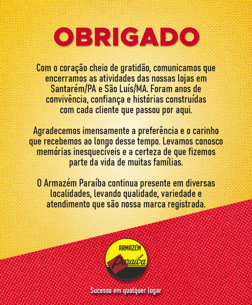 Logo cedo da manhã, o Grupo Claudino anunciou por meio de nota, que o Armazém Paraíba estava encerrando suas atividades na cidade de São Luís. A medida também se estendeu à próspera Santarém, um dos municípios mais importantes do interior paraense.