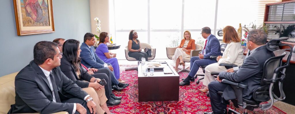 A presidente da Assembleia Legislativa do Maranhão, deputada Iracema Vale (PSB), recebeu, na manhã desta terça-feira (16), a visita institucional da juíza conselheira da Corte Constitucional de Angola, Maria de Fátima de Almeida Silva, e uma comitiva do Programa de Pós-Graduação em Direito da Universidade Federal do Maranhão (PPGDIR/UFMA), em missão oficial de intercâmbio institucional e acadêmico. O encontro ocorreu por iniciativa da deputada Helena Duailibe (PP).
