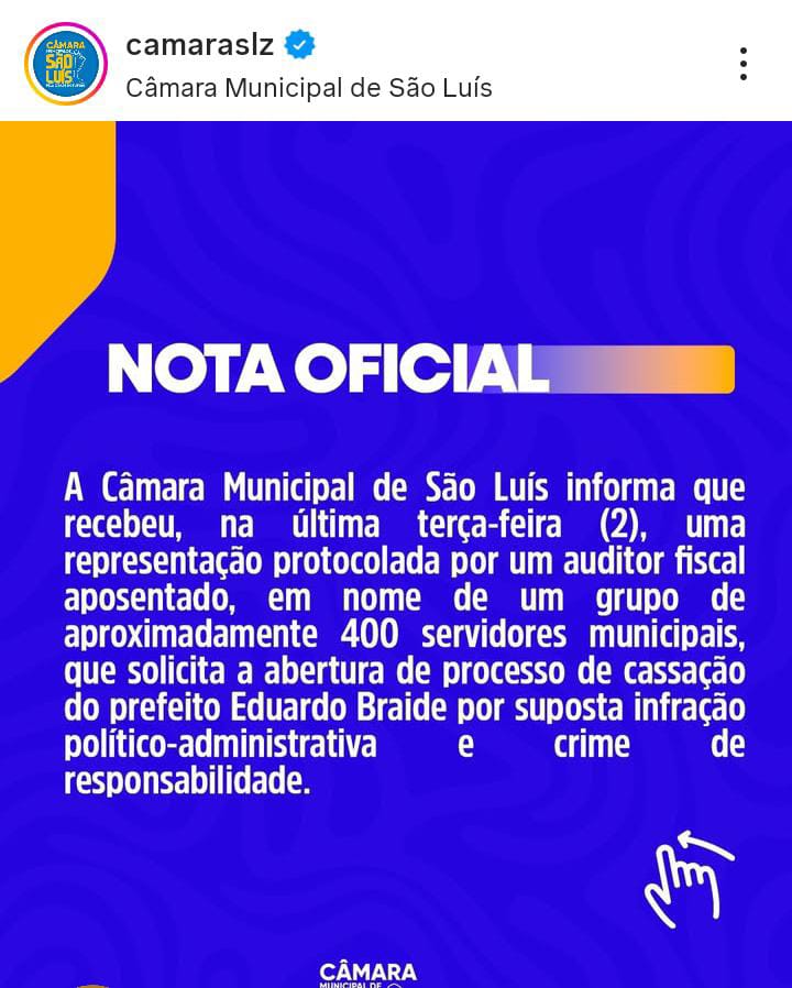 Tanto é assim, que logo em seguida, a Câmara tratou de tirar o corpo fora e sair de fininho da confusão. Emitiu Nota Oficial declarando que a denúncia pra formalização do processo de impedimento do gestor ludovicense partiu de 400 servidores da própria Prefeitura de São Luís, protocolada na “Casinha do Povo” no dia 2.