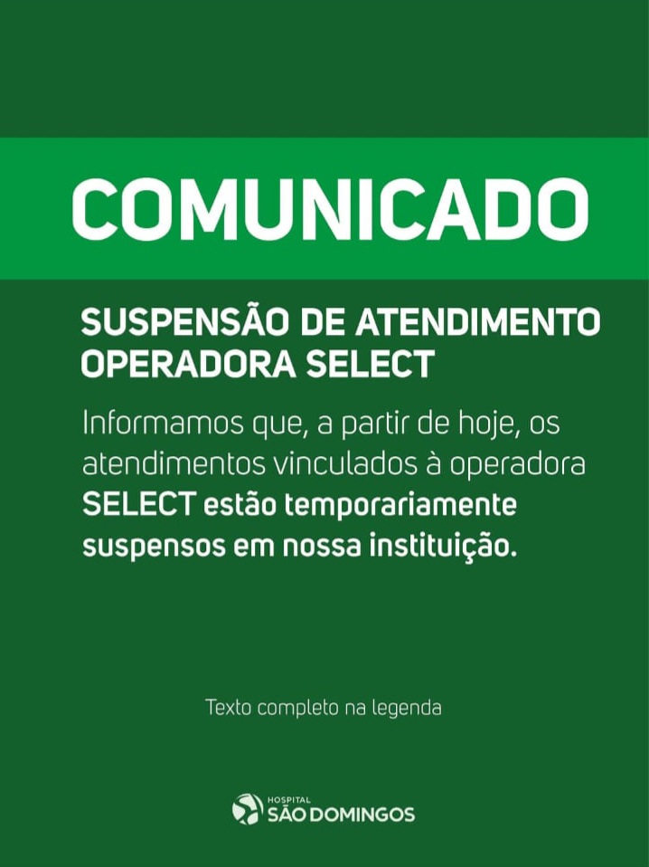 * Qual teria sido o motivo para o Hospital São Domingos “suspender” atendimento médico aos usuários do plano de saúde Select??? Uns dizem que o motivo seria a fragilidade da saúde financeira de ambos lados…