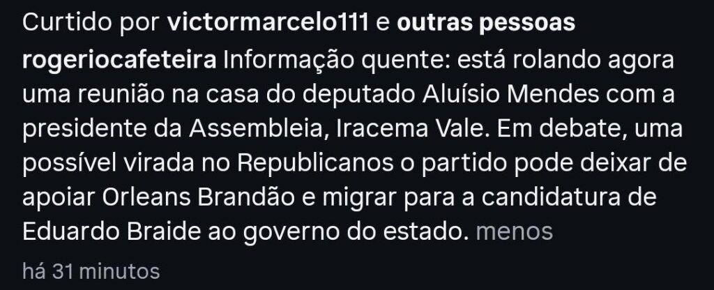 A renúncia de Braide foi o assunto mais comentado naquele dia nas redes sociais, com grande aceno popular a favor do agora pré-candidato a governador. Braide disse que pretende visitar os outros 216 municípios maranhenses e que vai começar o “percorrido” pela “Imperosa”.